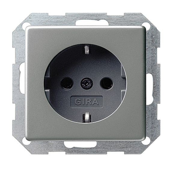 Розетка Gira SYSTEM 55, скрытый монтаж, с заземлением, со шторками, серебристый, 045328